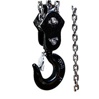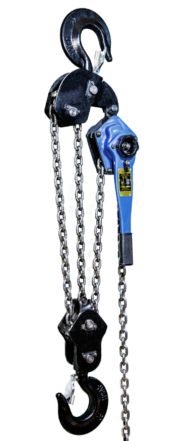 正品9噸飛鴿手扳葫蘆為三行鏈結構的合金鋼手扳葫蘆,外觀顏色以藍色和黑色為主,由上下吊鉤、罩殼、鏈條、手柄等組件組成,整機效果如上圖所示。
