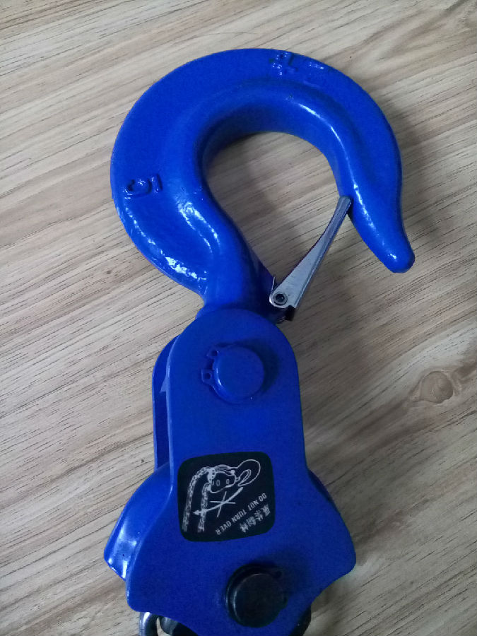 上圖為2噸飛鴿手拉葫蘆兩個吊鉤的直面展示圖,通過觀察上圖我們可以發現,其吊鉤開口處是有舌片設計的,其吊鉤正面是由噸位標識的。
